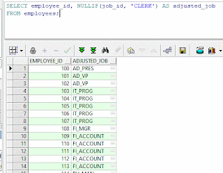 SELECT employee_id, NULLIF(job_id, 'CLERK') AS adjusted_job